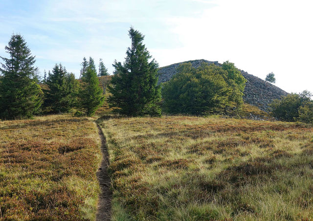 Au sommet, continuer à suivre l'unique sentier vers le "Col du Lauchen". A ce col, se diriger vers la gauche sur le chemin carossable en suivant le rectangle jaune en direction du "Col du Hilsenfirst". Le chemin se transformera en sentier à travers les myrtilliers juqu'à rejoindre le col.