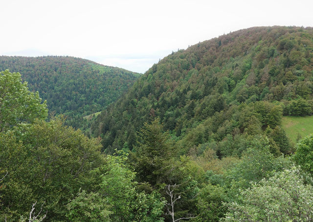 Derrière l'auberge, prendre la direction "Ballon d'Alsace" (balisage bleu-blanc-bleu) jusqu'à la crête puis après une descente, au niveau de la Haute Bers (altitude 1137m), tourner à gauche vers le le rectangle rouge "Col des Perches".